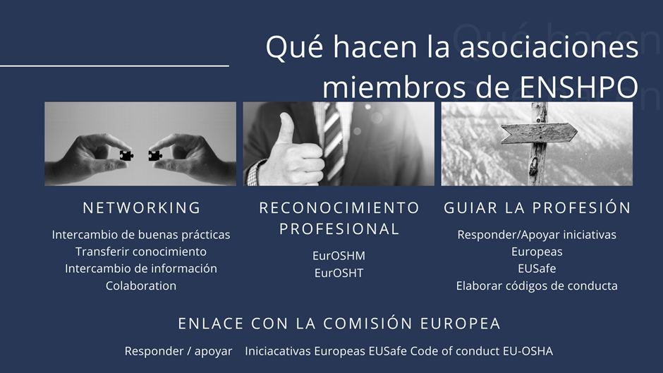ENSHPO se estableció en 2001 bajo el paraguas de la Agencia Europea para la Salud y la Seguridad en el Trabajo (EU-OSHA). Sus miembros Fundadores son IOSH (UK), VDSI (Germany) DKK (Dinamarca) y su ámbito de actuación es a nivel europeo, englobando a todos los países que componen el continente. Esto les permite contar con una visión internacional y les hace ser parte de varias redes internacionales.